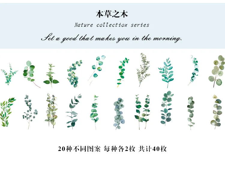 40 шт.компл. ретро цветочные зеленые наклейки "растения" украшение ...
