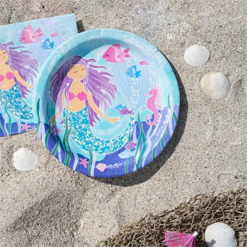 Праздвечерние чные товары для маленькой Русалочки, одноразовые набо...