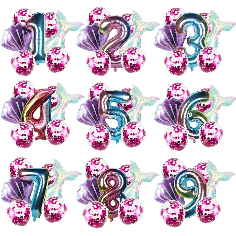Оформление воздушных шаров в виде цифр для дня рождения русалки, 1,...