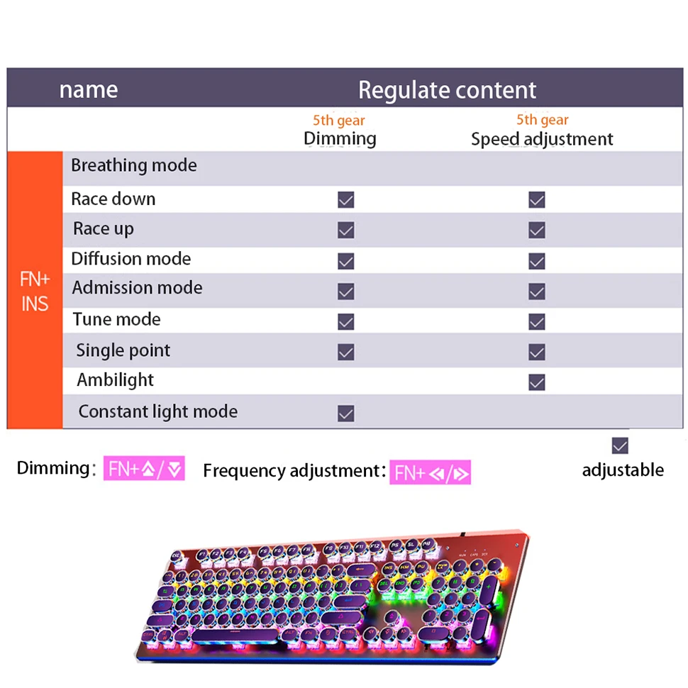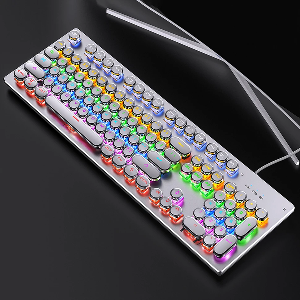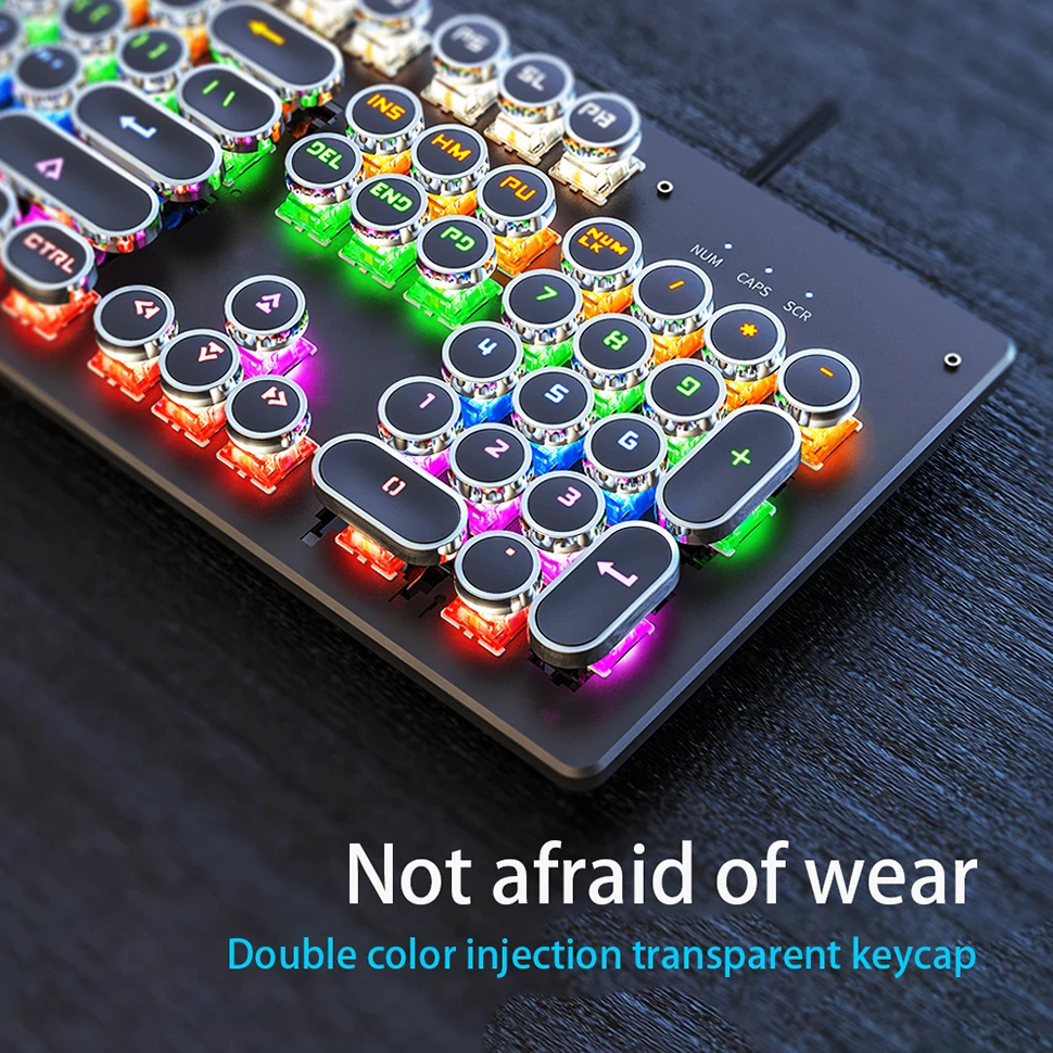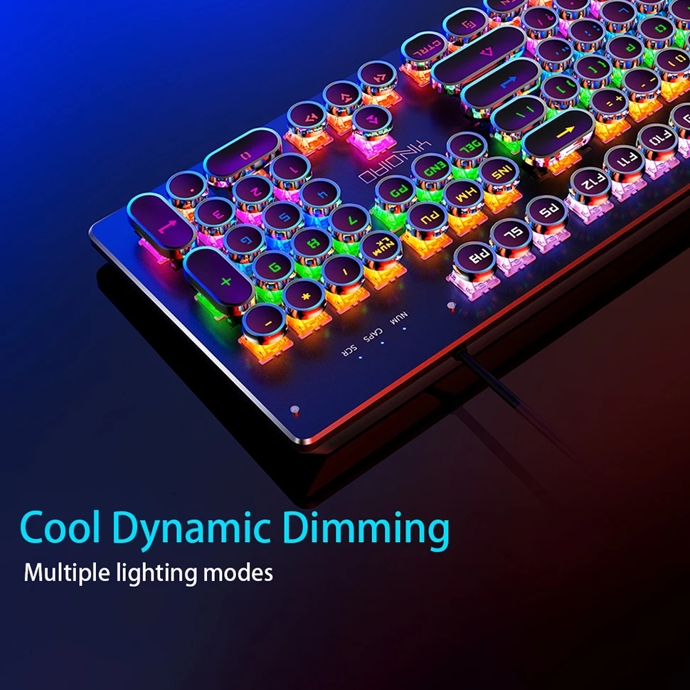 Механическая клавиатура с панелью, круглаяквадратная клавиатура в стиле ретро, клавиатура с подсветкой, проводная игровая клавиатура с чернымсинимкоричневым переключателем для ПК и ноутбука