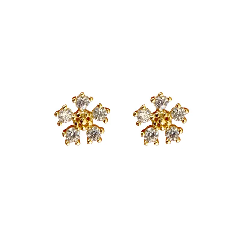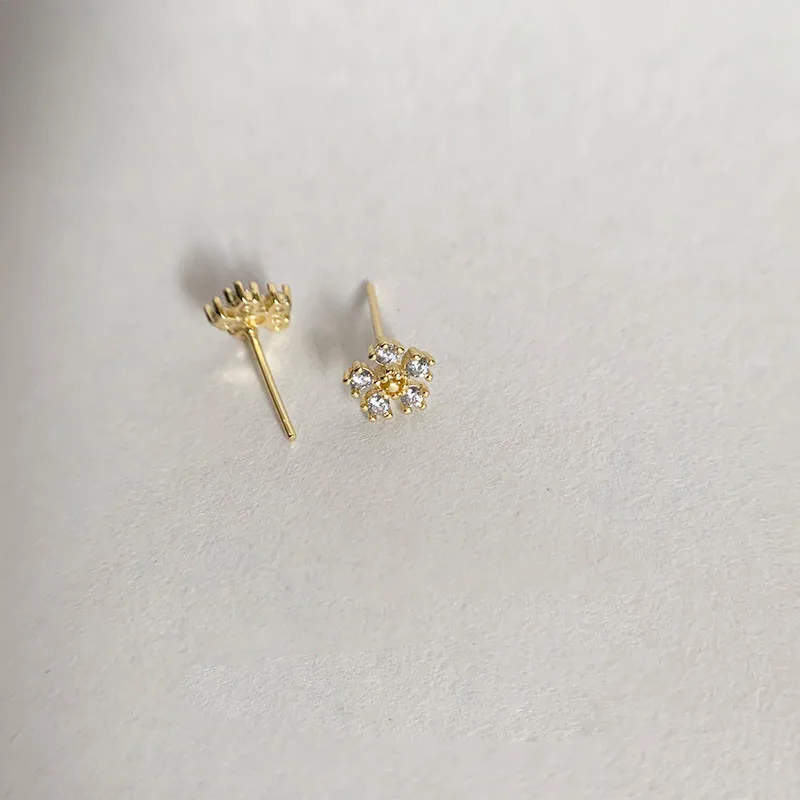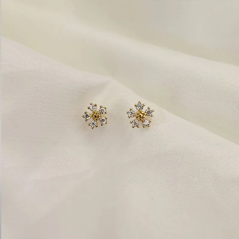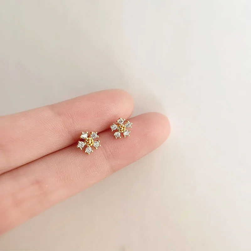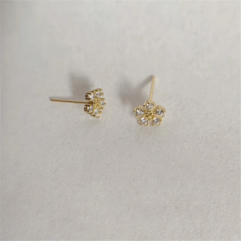 HI-MAN 925 серебряное покрытие из настоящего золота из 14-каратного золота в Корейском стиле с украшением в виде кристаллов серьги-гвоздики в виде цветка для женщин маленький Простой вечерние ювелирные изделия