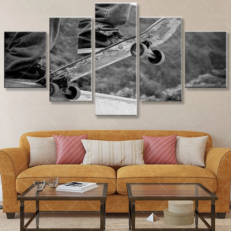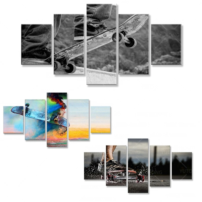 5 панелей Hd печатная модульная Картина на холсте скейтборд Экстремальные виды спорта плакат и печать настенное искусство спортивный зал декор комнаты с фрамэ