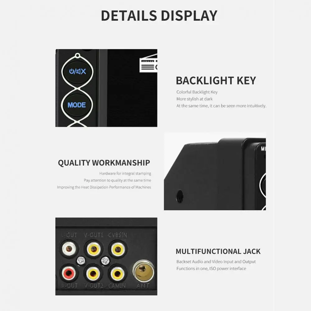 N6 7 дюймов сенсорный экран Экран 2 Din Автомобильный Радио Bluetooth совместимым видео MP5 плеер с КамераХарактеристики:Новая пластиковая/аппаратная форма.Цветные кнопки (цвета можно контролировать отдельно).Поддержка зарядки для Android/iPhone/ноутбука и т. Д.Новый дизайн пользовательского интерфейса.Импортированный радиомодуль, не выключается при температуре 120 км/ч.Первая в отрасли модель, которая поддерживает mirror link для iPhone XR.Тип: Автомобильный MP5 плеерМатериал корпуса: металл + пластик + электронный компонентРазмер дисплея: 7 "TFT экранРазрешение экрана: 800*480Напряжение: 12 ВМобильный телефон зеркальная ссылка: Поддержка Apple, для AndroidЯзыки: английский, испанский, французский, итальянский, тайский, арабский, украинский, португальский, чешский, Английский, индонезийский, немецкий, русскийФункция напоминания о тормозе: ПоддержкаУправление рулем: ПоддержкаИмя, совместимое с Bluetooth: CAR-BTЧип усилителя мощности: TDA7388Радиочастота: FM 87,5-108 МГцВидеовыход: ПоддержкаРазмер: 178 мм x 100 мм x 65 мм/7,01 "x 3,94" x 2,56 "(прибл.)Примечания:Благодаря светильник и экрана Цвет Товара может быть s светильник ly отличается из-за характеристик монитора компьютера.Возможны незначительные отклонения в размерах из-за различных измерений вручную.1 посылка включает в себя:1 х Автомобильный MP5 плеер1 х Кабель питания1 пульт дистанционного управления1 x Руководство пользователя2 посылка включает в себя:1 х Автомобильный MP5 плеер1 х Кабель питания1 пульт дистанционного управления1 x Руководство пользователя1x4-светодиодный задний Камера3 посылка включает в себя:1 х Автомобильный MP5 плеер1 х Кабель питания1 пульт дистанционного управления1 x Руководство пользователя1x8-светодиодный камера заднего вида4 посылка включает в себя:1 х Автомобильный MP5 плеер1 х Кабель питания1 пульт дистанционного управления1 x Руководство пользователя1 х контроллер рулевого колеса5 посылка включает в себя:1 х Автомобильный MP5 плеер1 х Кабель питания1 пульт дистанционного управления1 x Руководство пользователя1 х контроллер рулевого колеса1x4-светодиодный задний Камера6 посылка включает в себя:1 х Автомобильный MP5 плеер1 х Кабель питания1 пульт дистанционного управления1 x Руководство пользователя1 х контроллер рулевого колеса1x8-светодиодный камера заднего вида