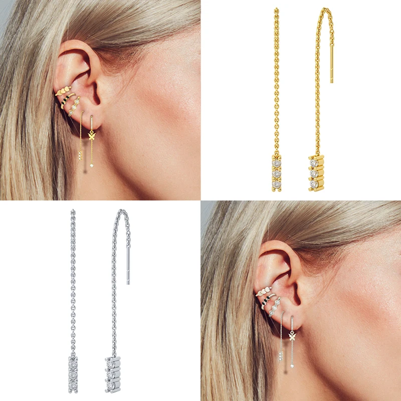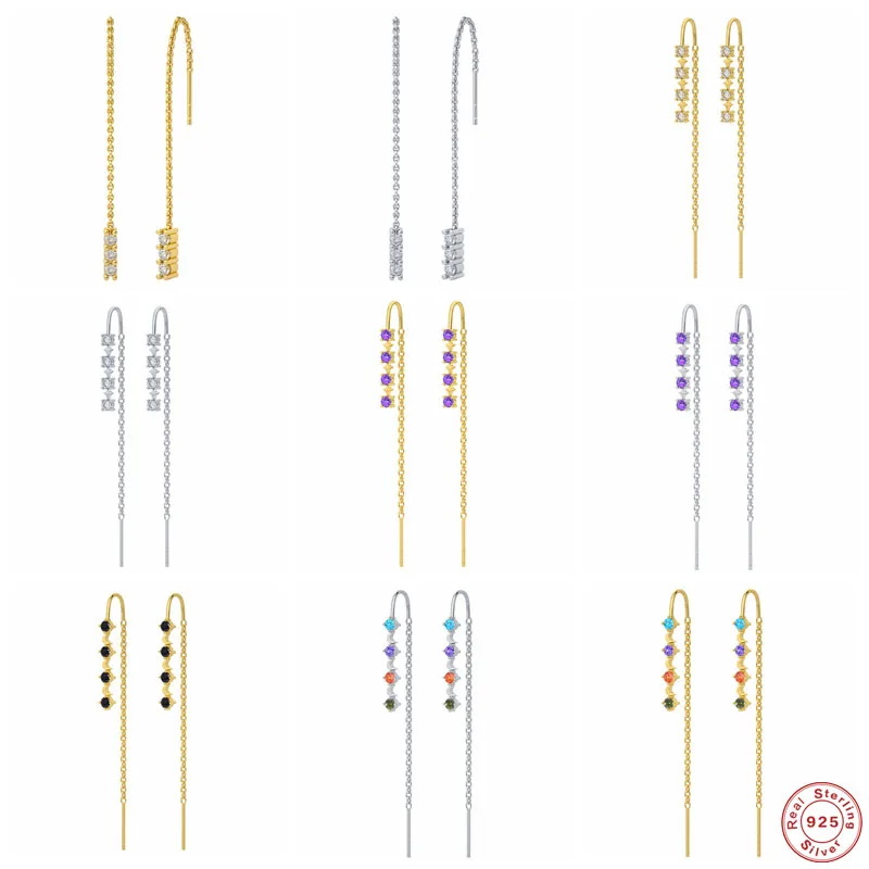 BOAKO 925 стерлингового серебра Красочные Циркон длинная цепь кисточкой нитки серьги для женщин, серьги в виде капель с вечерние ювелирные изделия: модные серьги в форме