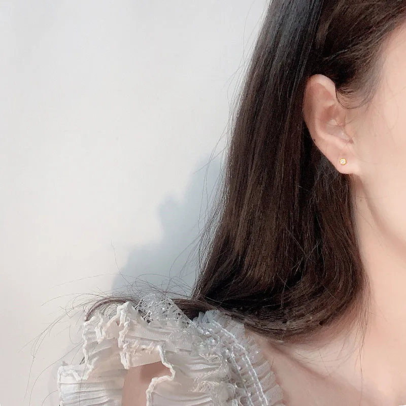 HI-MAN 925 стерлингового серебра покрытие из настоящего золота 14K, покрыто золотом японский Кристальные серьги-гвоздики для женщин милый маленький День рождения украшения