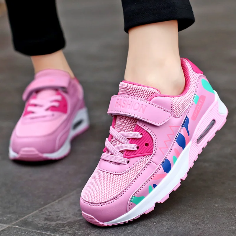 Детские сетчатые кроссовки, легкая спортивная обувь для девочек, на плоской подошве, милые розовые, на осень