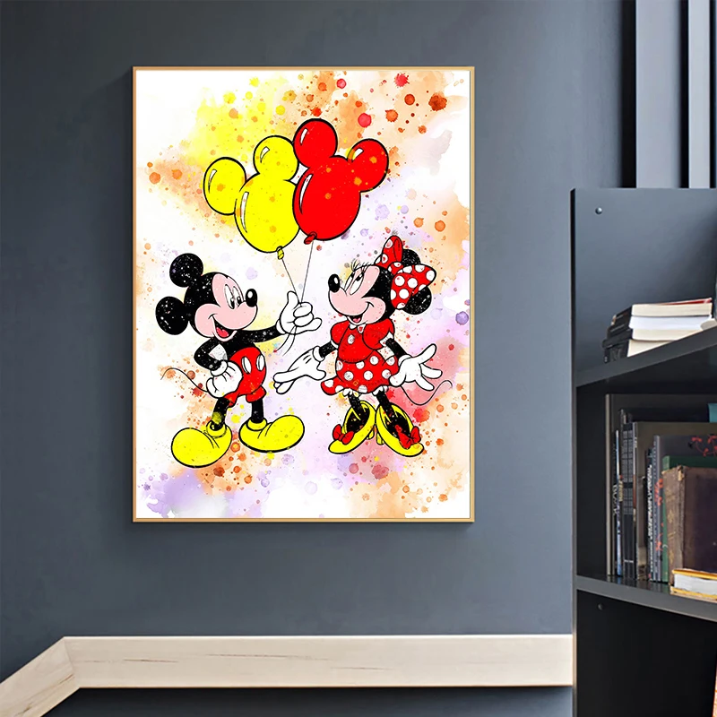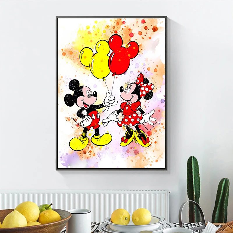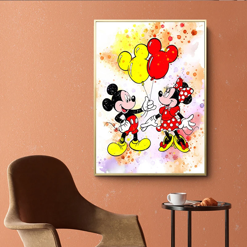 Постер акварельный Микки и Минни, настенные художественные постеры на холсте с изображением Диснея, декор для детской спальни, подарок на день рождения, детский Декор