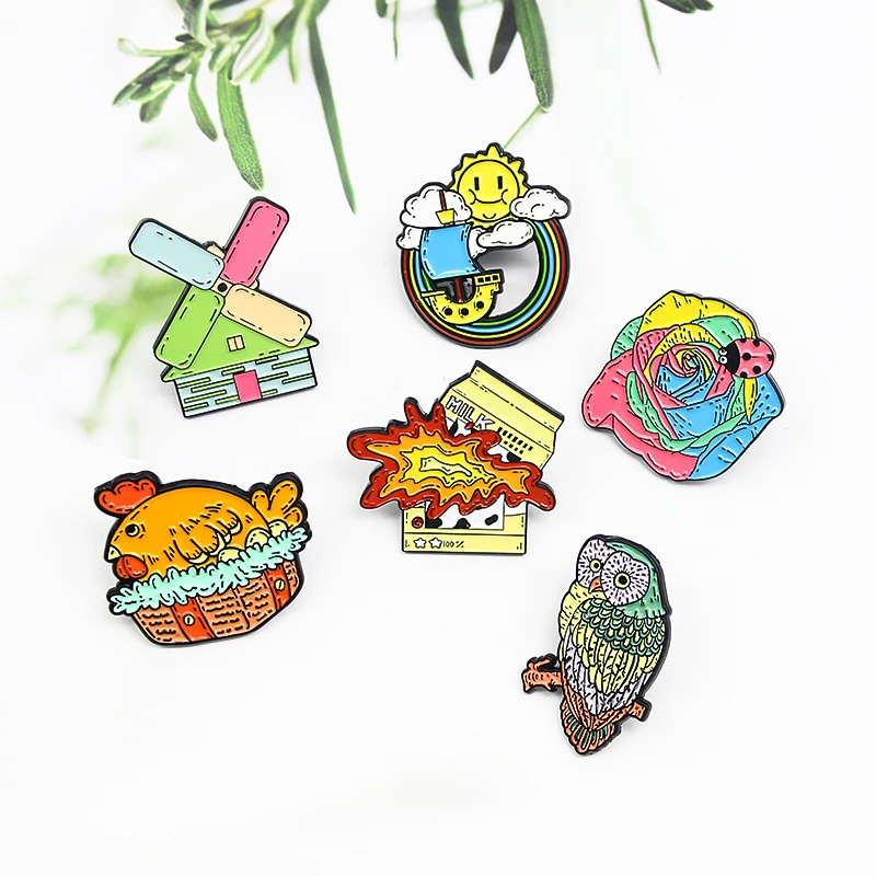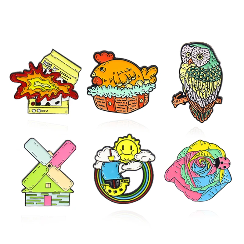 Красочная роза Сова Брошь Петух и курица под заказ насекомые Божья коровка молочная ветряная мельница парусник эмалированная заколка рюкзак для женщин девушек ювелирные изделия