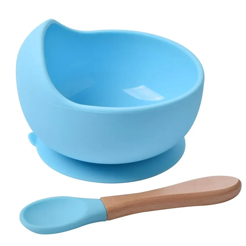 Силиконовая миска для кормления младенцев, 1 комплект, посуда, водонепроницаемая ложка, нескользящая посуда, не содержит Бисфенол А, силиконовые тарелки для младенцев, тарелка для младенцев
