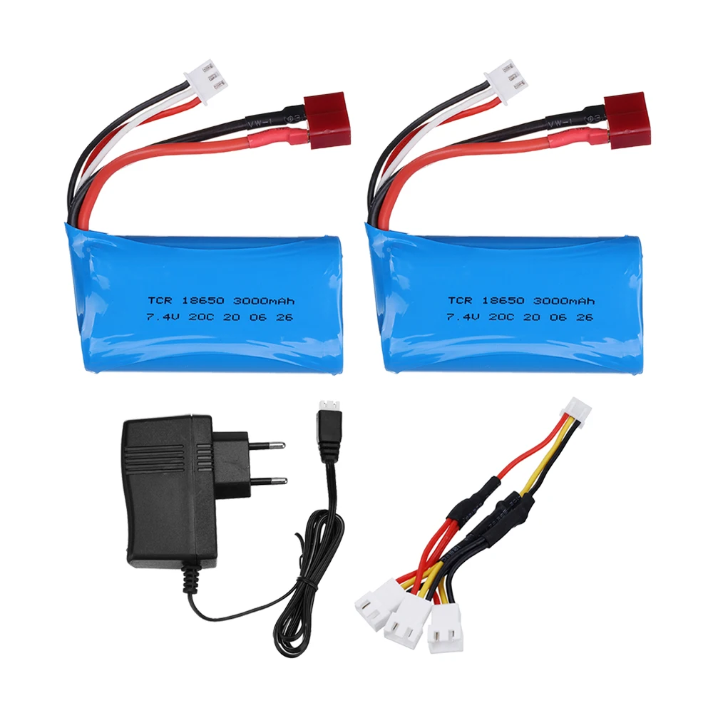 Литий-полимерный аккумулятор 2s, 18650, 7,4 В, 3000 мА ч, для Wltoys 1242310428 12429124011240212402A, запасные части для радиоуправляемых автомобилей, зарядное устройство, 7,4 В, 2S