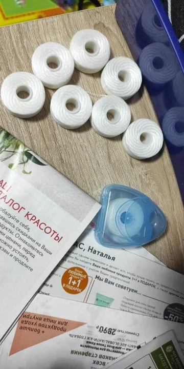 Заказ пришёл быстро, всё соответствует описанию. Нитка не толстая, приятная, вкус мяты выраженный. Единственный минус - запасные мотки ни во что не упакованы, лежали просто россыпью в транспортировочном пакете. Это странно... всё-таки это средство гигиены!