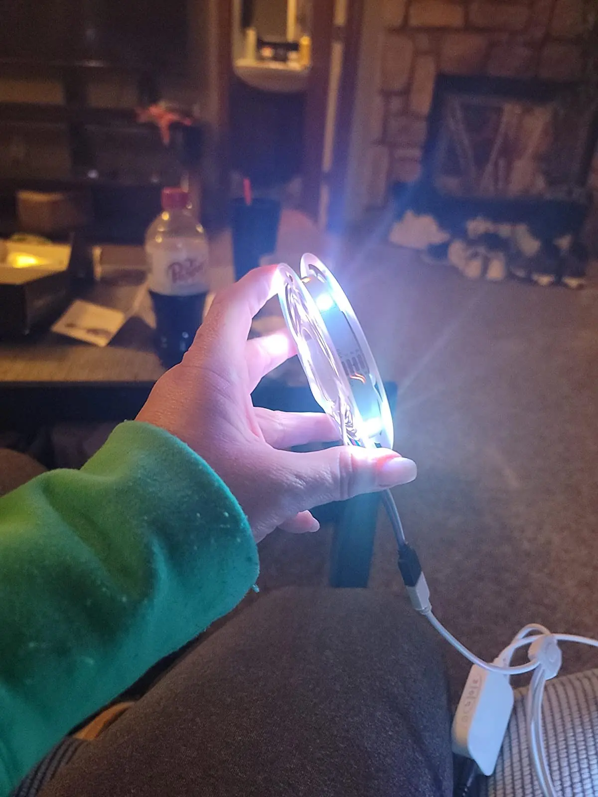 Отлично работает! Очень яркий и регулируемый, если я хочу, чтобы он тускнел. Много цветов на выбор и очень быстро реагирует. Клей кажется очень липким и не соскальзывал, поэтому я ожидаю, что он будет гореть очень долго