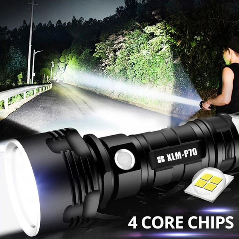 Супер мощный фонарик XHP70 светодиодный водонепроницаемый уличный тактический фонарь перезаряжаемый ультра яркий фонарь Сверхяркие лампы L2 и P70, от L2 до 1600 люменов, от p70 до 4800 люменов, P70-лучший выбор для наружного освещения. Информация о продукте:Бренд: JONCELYМатериал: алюминиевый сплавСветодиодный шарик лампы Модель: L2 / P70Цвет: черныйСветильник Цвет: белый светильникПереключатель: переключатель средней кнопки (с дисплеем питания)Светильник ing режим: три режима: сильный светильник, низкая светильник и серийную съемку флэш-памятиБатарея: 1x2665 0 литиевая батареяСпособ зарядки: зарядка через USBРазмер: L2 15x5.1x3.1cmP70 15x5,6x3,6 смРабочее напряжение: 3,7 VЦвет изделия: черныйРегулировка Фокуса: нетВес изделия: P70 220g голые лампы и L2 170g голые лампы Характеристика 1. P50 Ламповые бусины, сильные дальние возможности, широкий диапазон облучения, длительный срок службы батареи2. Углубления головной светильник чашки: углубления конструкция головки светильник чашки, сосредоточившись на сильный светильник для дальнего расстояния, что удобно для светильник ing использования3. Режим астигматизма-прожектора, удобный в использовании в различных ситуациях4. Средний переключатель: резиновый материал, нескользящая обработка поверхности, сенсорный светильник может переключаться на светильник Примечания 1. Водонепроницаемый: Может использоваться в дождливые дни, но, пожалуйста, не помещайте его непосредственно в воду