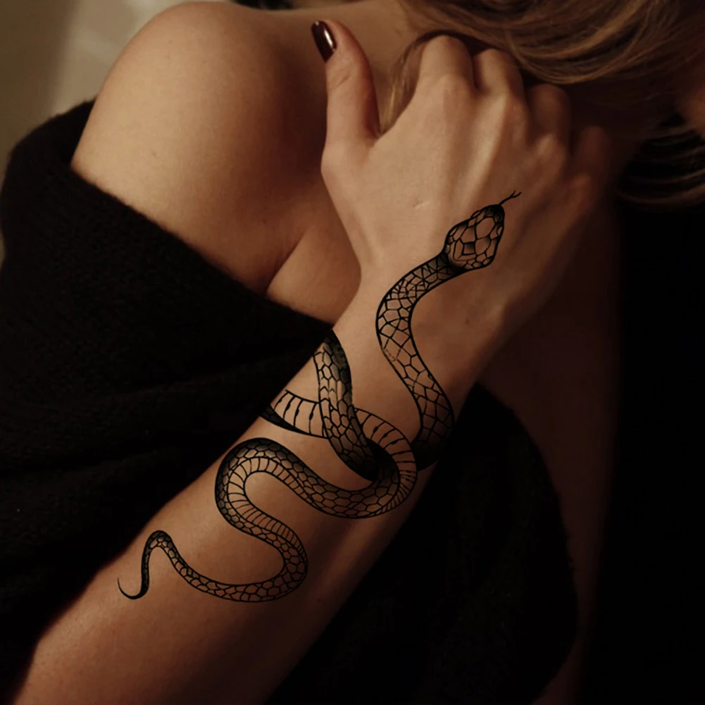 Большой размер, черная змея, Временные татуировки, наклейки для жен...