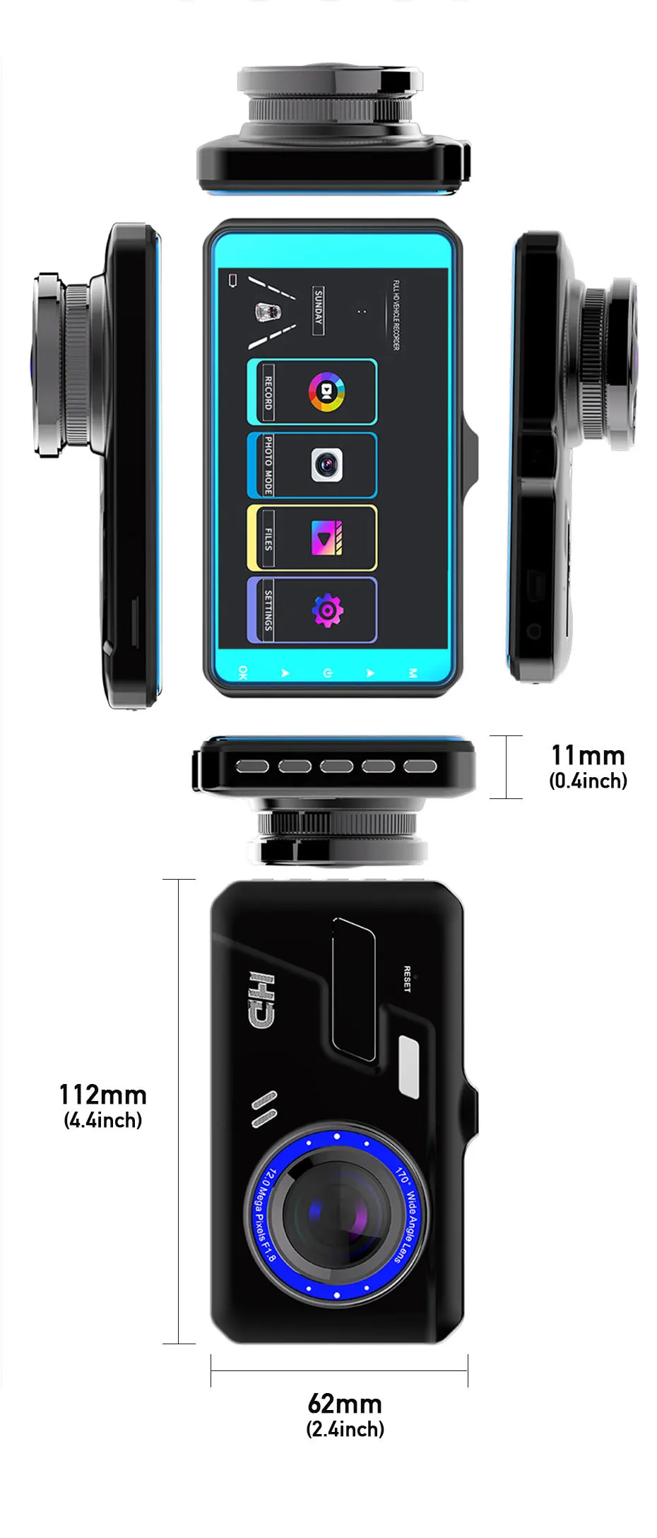 170 ° широкоугольная фронтальная камера и 140 ° широкоугольная задняя камера, Контролируйте свое транспортное средство во всех направлениях и записывайте все возможные несчастные случаи во времени