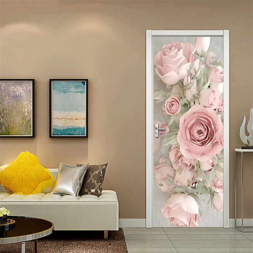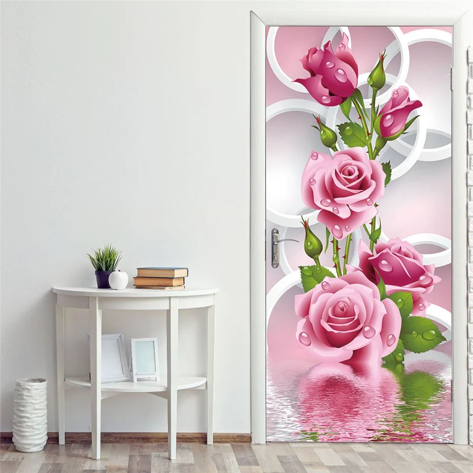 Обои с розовыми розами, 3D наклейка на дверь, водостойкий съемный постер, украшение для спальни, настенное украшение для дома, настенные Стикеры