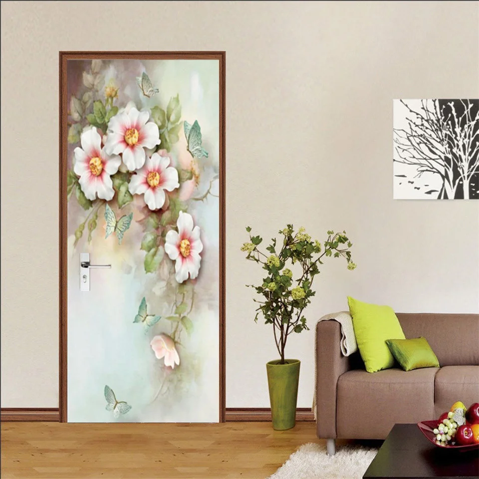 2 шт./компл. Красивые Цветочные наклейки для двери 3D Самоклеящиеся водонепроницаемые Плакаты для девочек в спальню, самодельные наклейки на стену из ПВХ для украшения дома