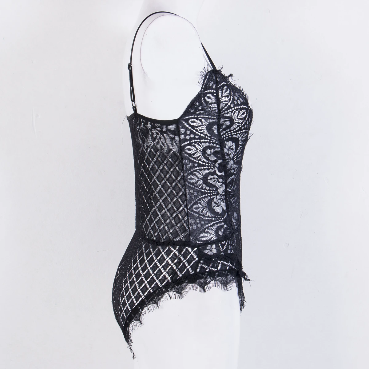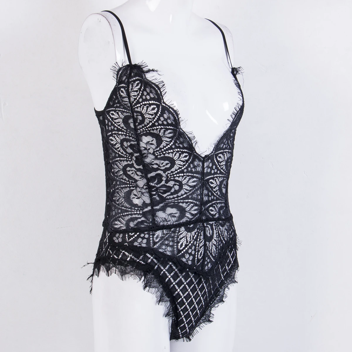 Женское нижнее белье Тедди, боди Babydoll, кружевная ажурная эластичная глубокая v-образная Пижама, сексуальное ночное белье на бретельках