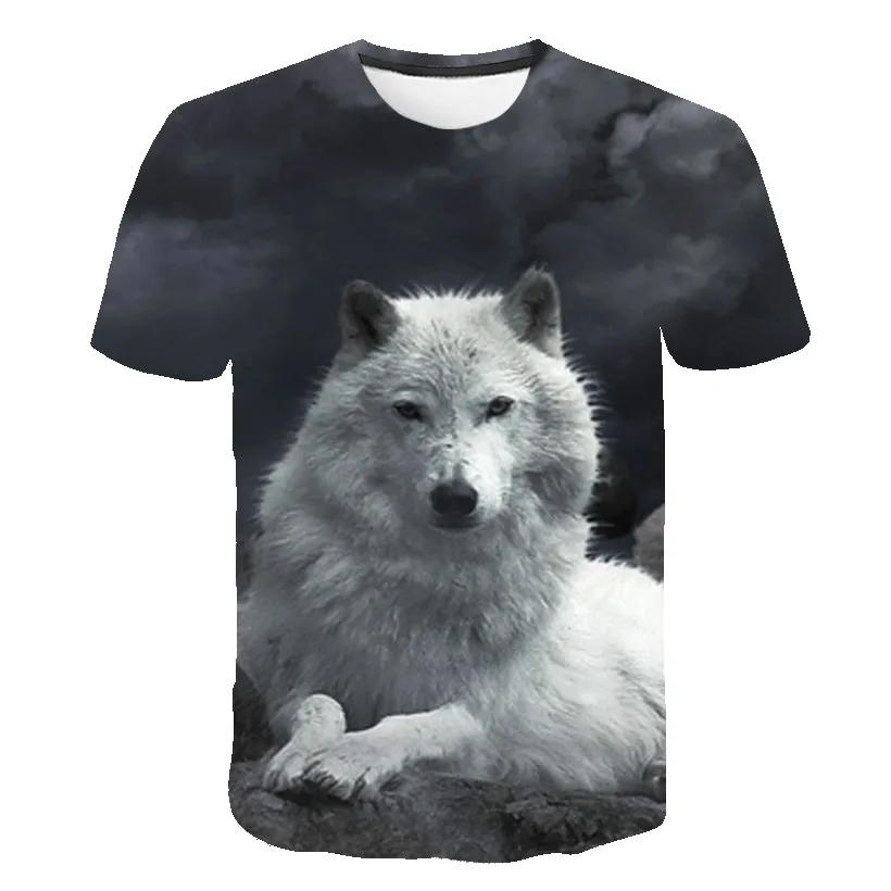 Летняя детская одежда, футболка с коротким рукавом и 3D-принтом волка, модная Милая футболка с мультяшным рисунком для мальчиков и девочек