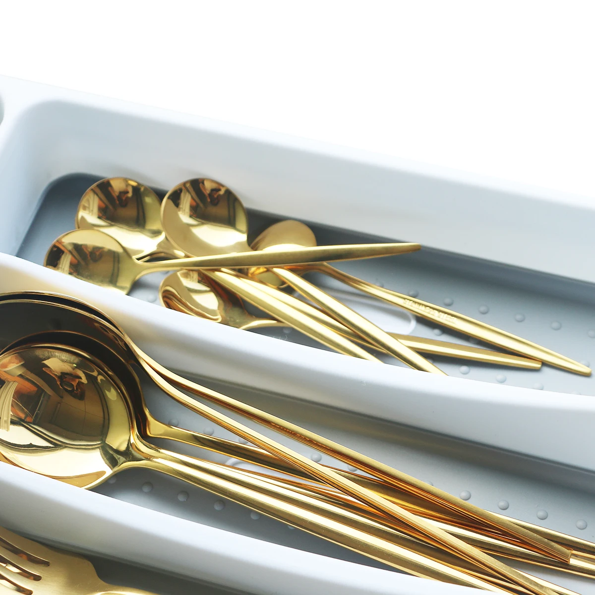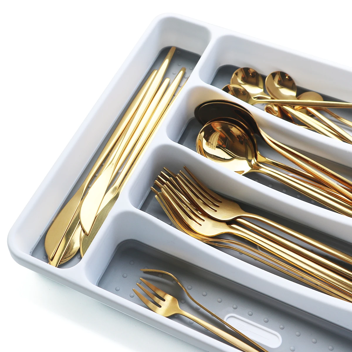 30 шт. золотой набор посуды Нержавеющаясталь набор посуды Ножи вилок в виде ложки набор столовых приборов Пластик лоток для хранения Кухня столовые приборы