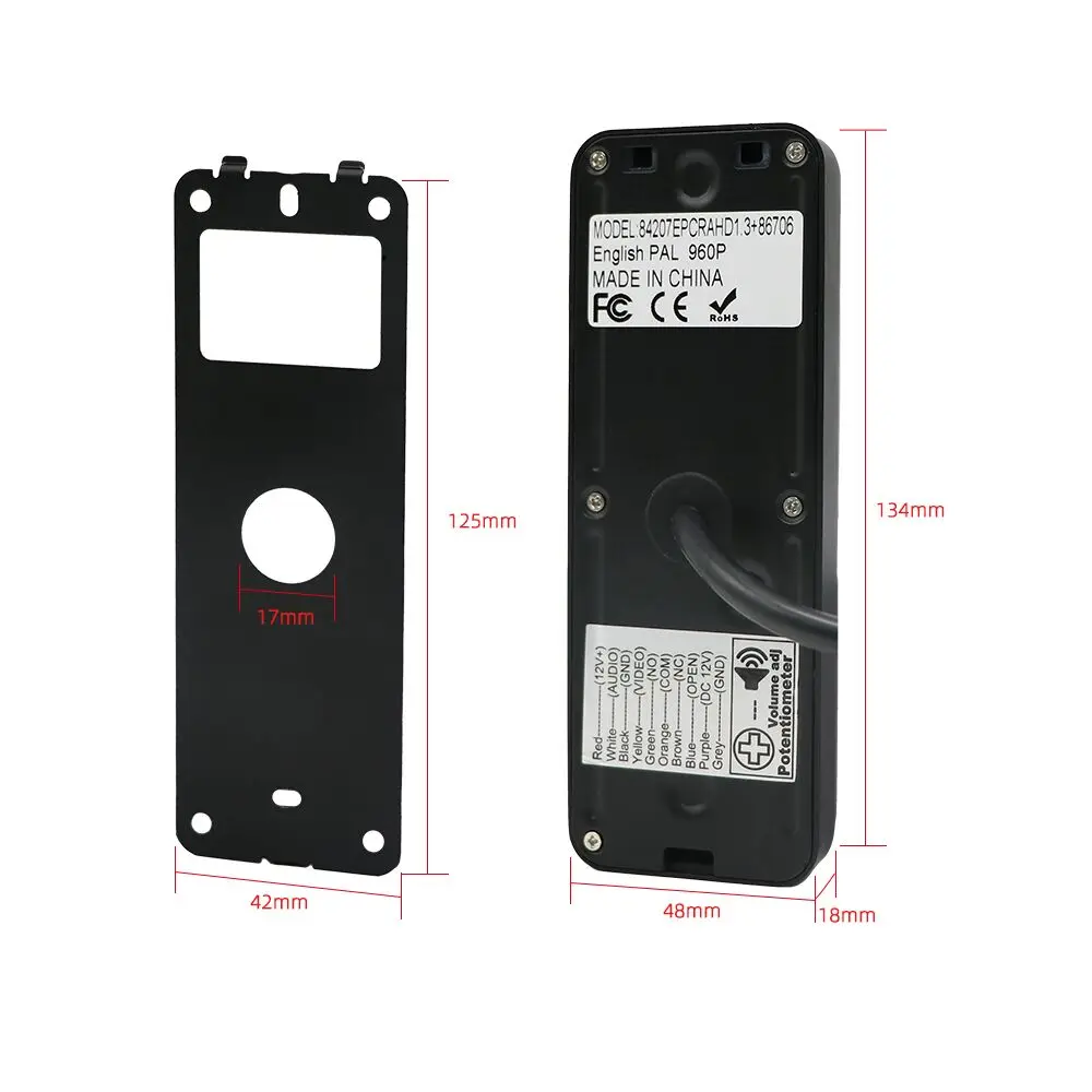 ♦Камера 960P♦13,56 МГц RFID карта + код разблокировки клавиатуры♦Поддержка разблокировки пароля♦ИК-светодиоды для ночного видения♦Регулируемый громкость внутренней связи♦Двусторонний Интерком♦ИК-датчик, Автоматическое включение/выключение ИК-светодиодов♦Простая установка и установка DIY♦Антиантивандальная панель из алюминиевого сплава♦IP65 к атмосферным воздействиям