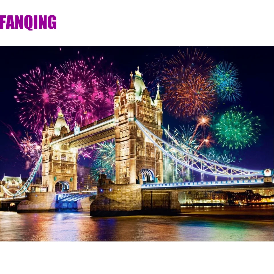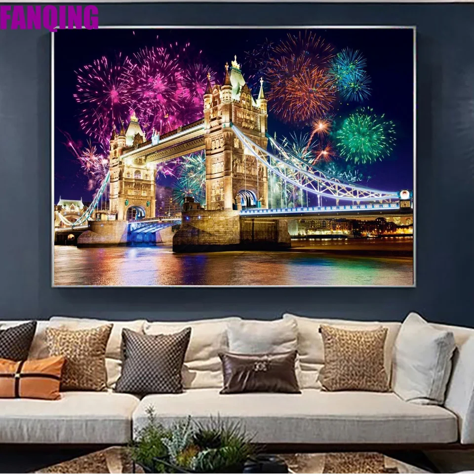 Полный алмаз 5D DIY Алмазная картина Лондонский мост ночной вид фейерверк Алмазная вышивка крестиком Стразы Мозаика Декор