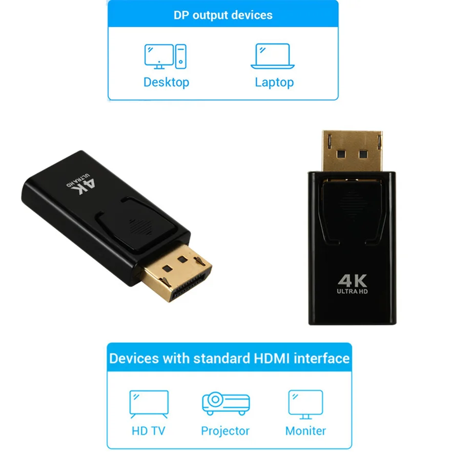 Адаптер Grwibeou 4K DP в HDMI-совместимый, переходник со штекера на гнездо для HD ТВ, Кабельный адаптер, видео аудио для ПК, ТВ
