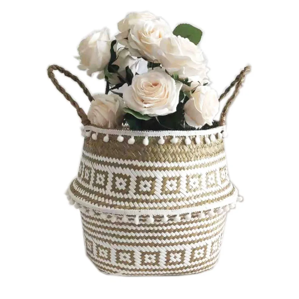 Многофункциональная плетеная корзина из ротанга для хранения водорослей, складной цветочный горшок, корзина для грязной одежды, декоративные корзины для домашнего сада