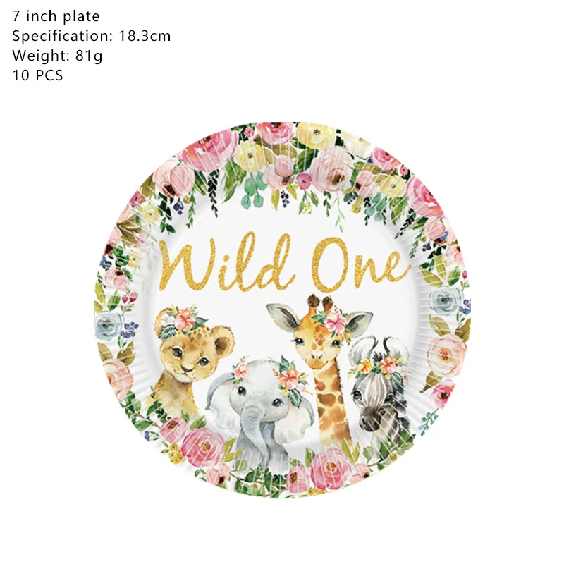 Розовый и надписью Wild ONE для дня рождения джунгли вечерние одноразовая посуда лесных животных вечерние шары Baby Shower девушка 1st День рождения вечерние Декор
