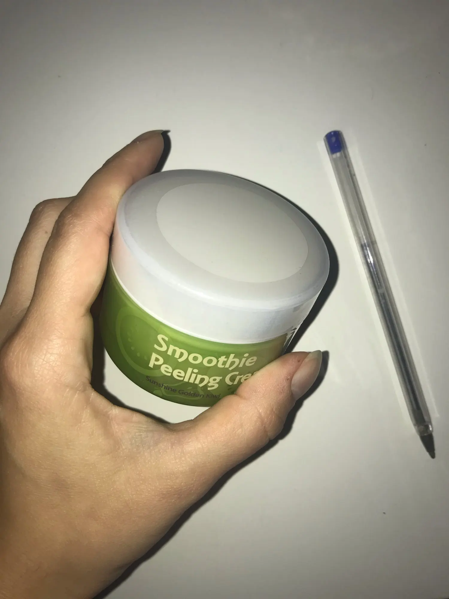 Это отшелушивающий крем-скраб "Смузи Пилинг" с экстрактом киви и миндальной косточкой. Деликатный пилинг на фруктовых кислотах, очищает кожный покров от ороговевших частиц, позволяя клеткам кожи получать больше кислорода. Очищает поры, улучшает рельеф, выравнивает тон.