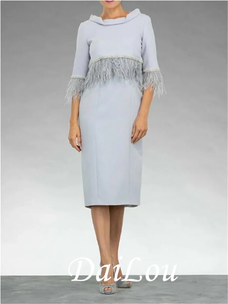 Платье-футляр для матери невесты, элегантное драгоценное платье до колен, атласный рукав до локтя с поясомлентой, 2022