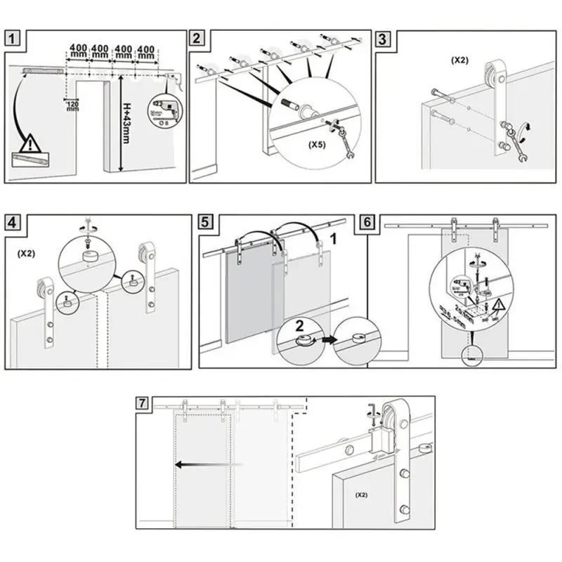 183 см подвесная направляющая для дверей сарая, набор для сращивания одной двери, Вешалка из углеродистой стали, направляющая для крепления на дверь, гладкая Бесшумная направляющая