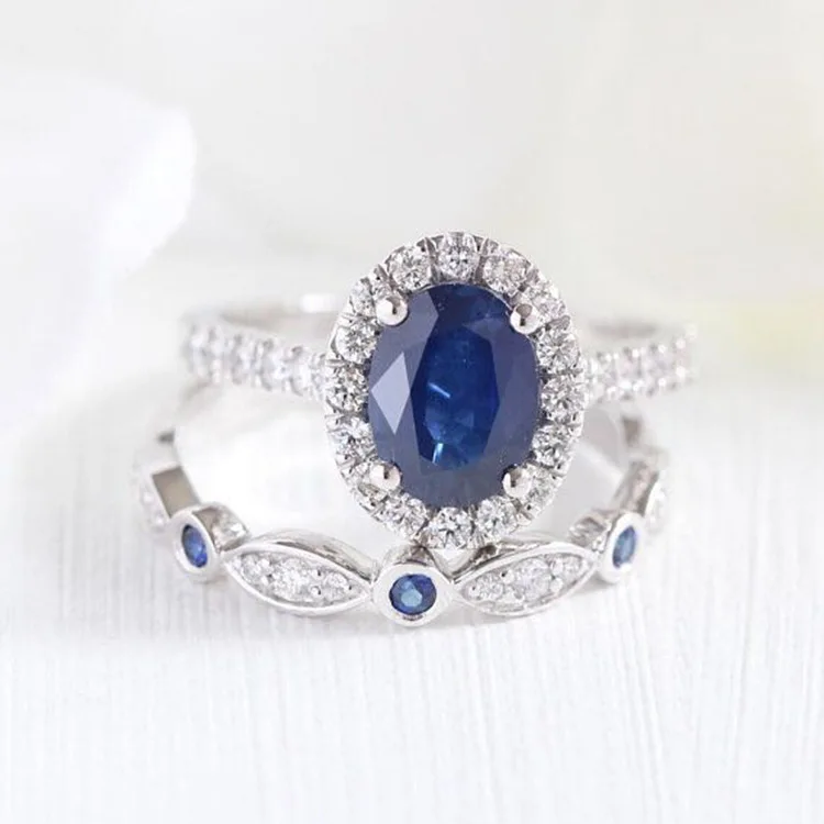 Простой набор колец с голубым цирконием для женщин, модные ювелирные изделия 2021, новая Европа и Америка, лучшие продавцы