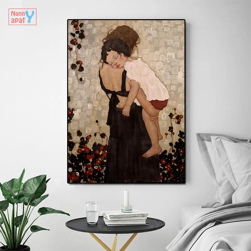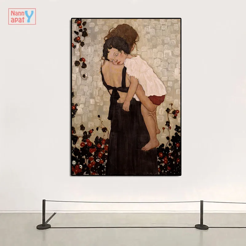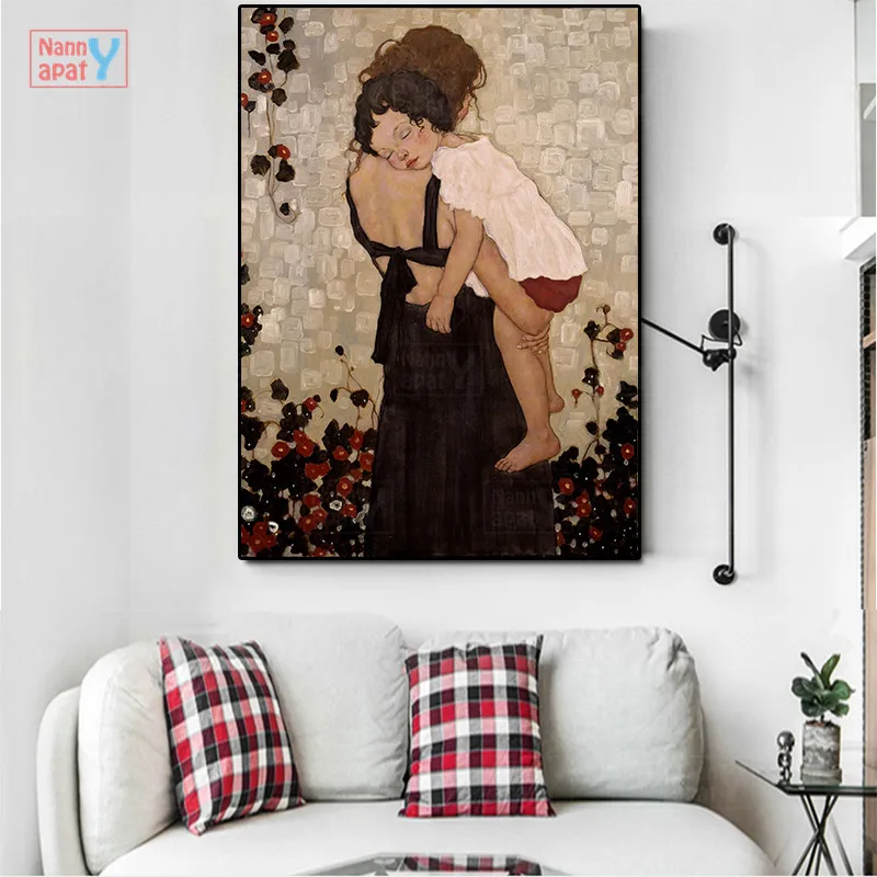 Картина на холсте Густава Климта, Постер и печать на холсте мама с ребенком, картина маслом на холсте для гостиной, украшение для дома