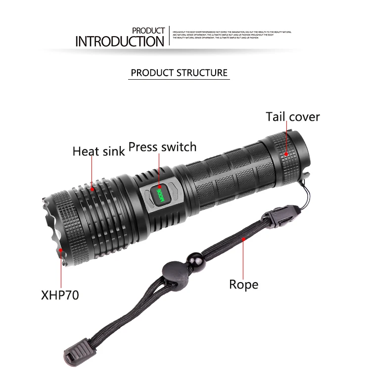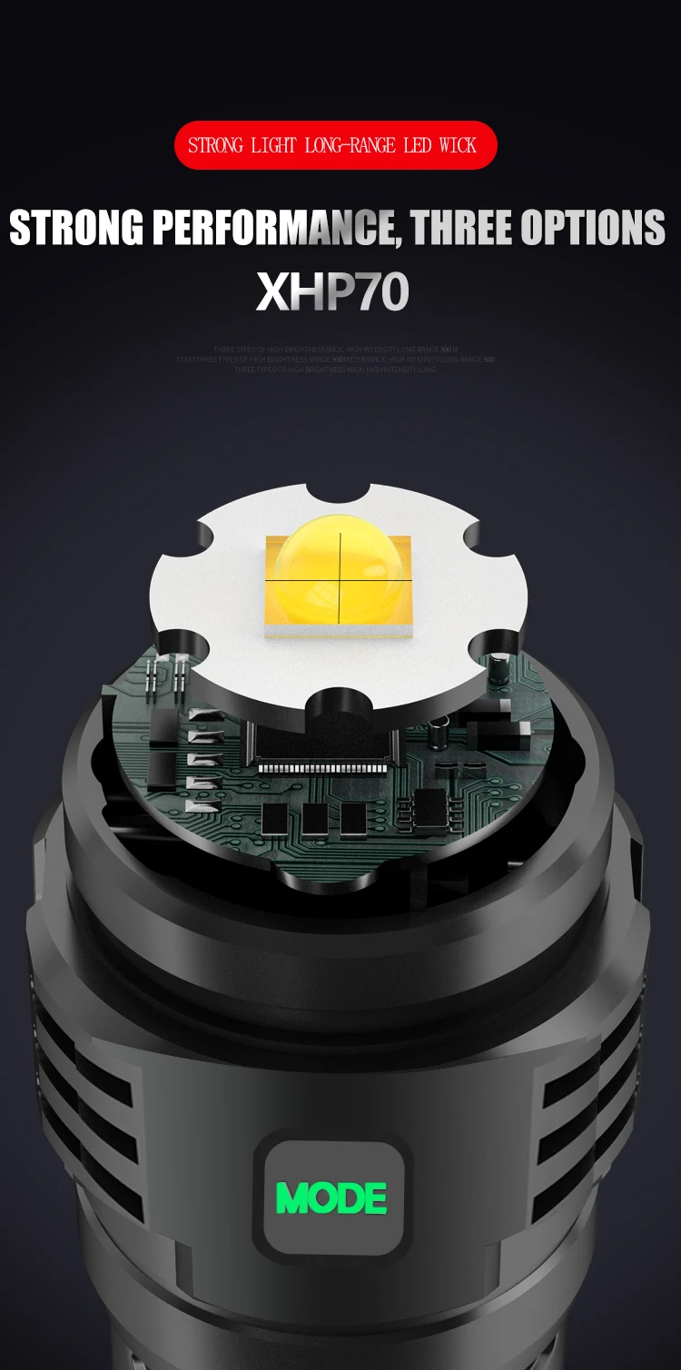 2021 высокая яркая мощность XHP70 светодиодная вспышка лампа алюминиевая охотничья L2 водонепроницаемый фонарь мощный яркий фонарь 18650