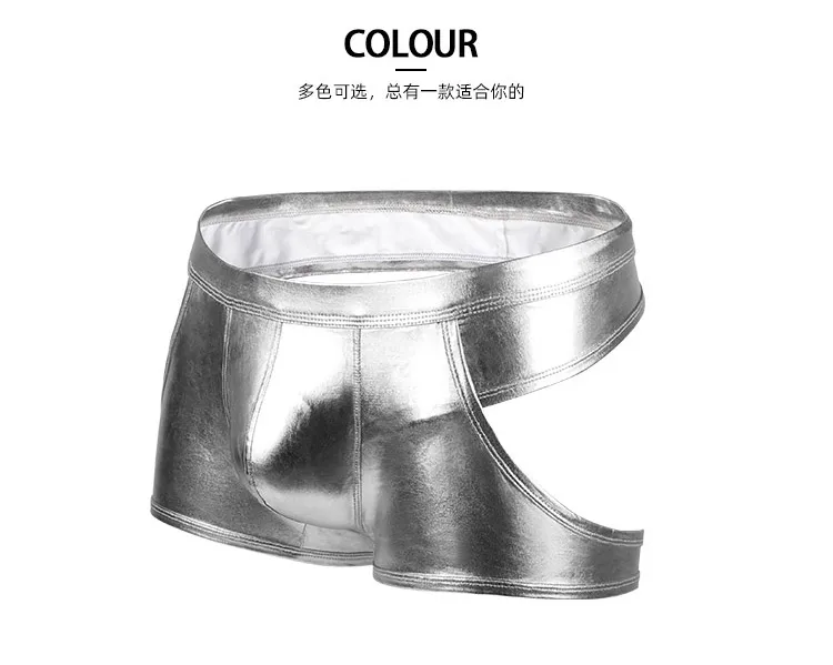 Трусы-боксеры мужские из искусственной кожи, с открытой ягодицами