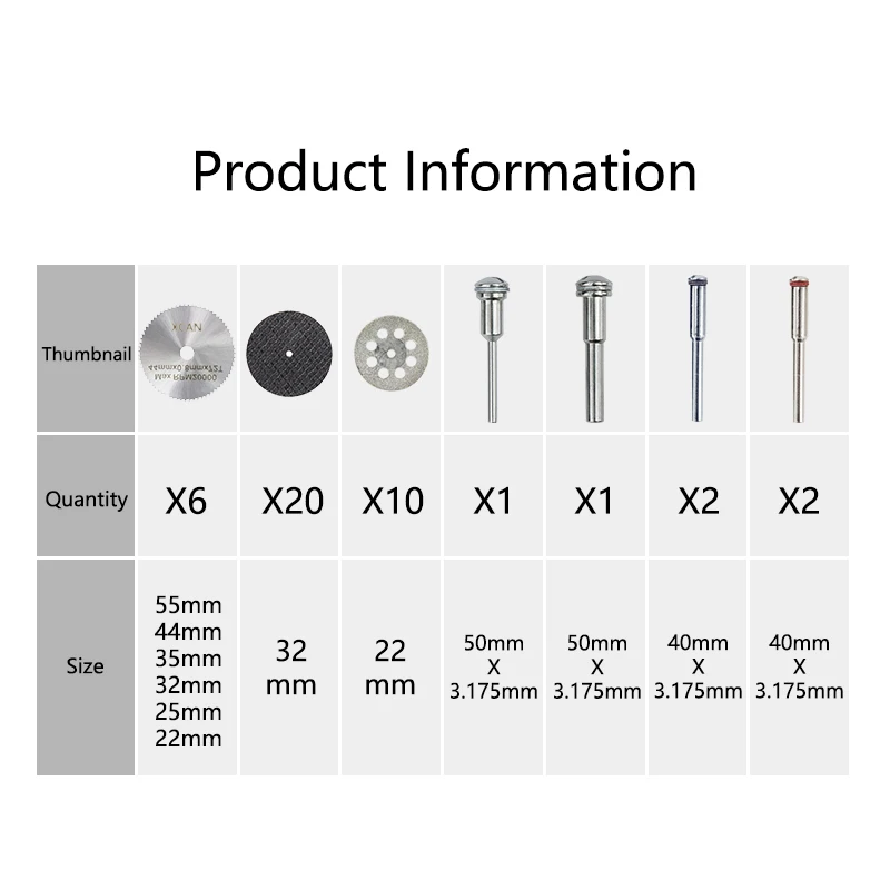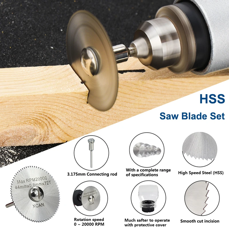 XCAN Мини режущий дисковый набор HSS пильный диск, алмазная пила, отрезное колесо из смолы для вращающегося инструмента Dremel, дисковая пилаСпецификация:
