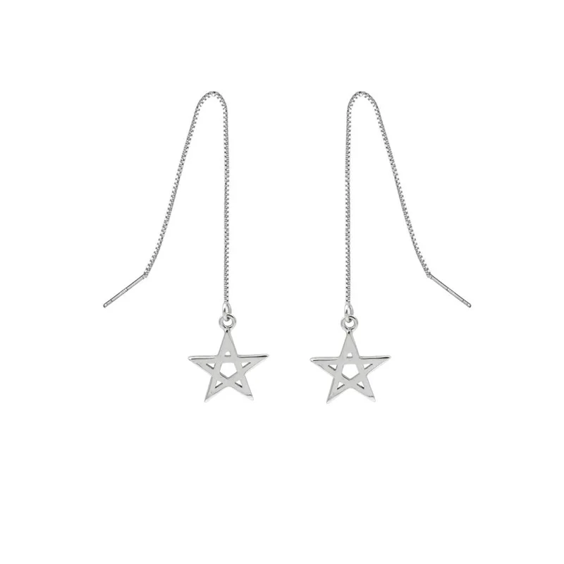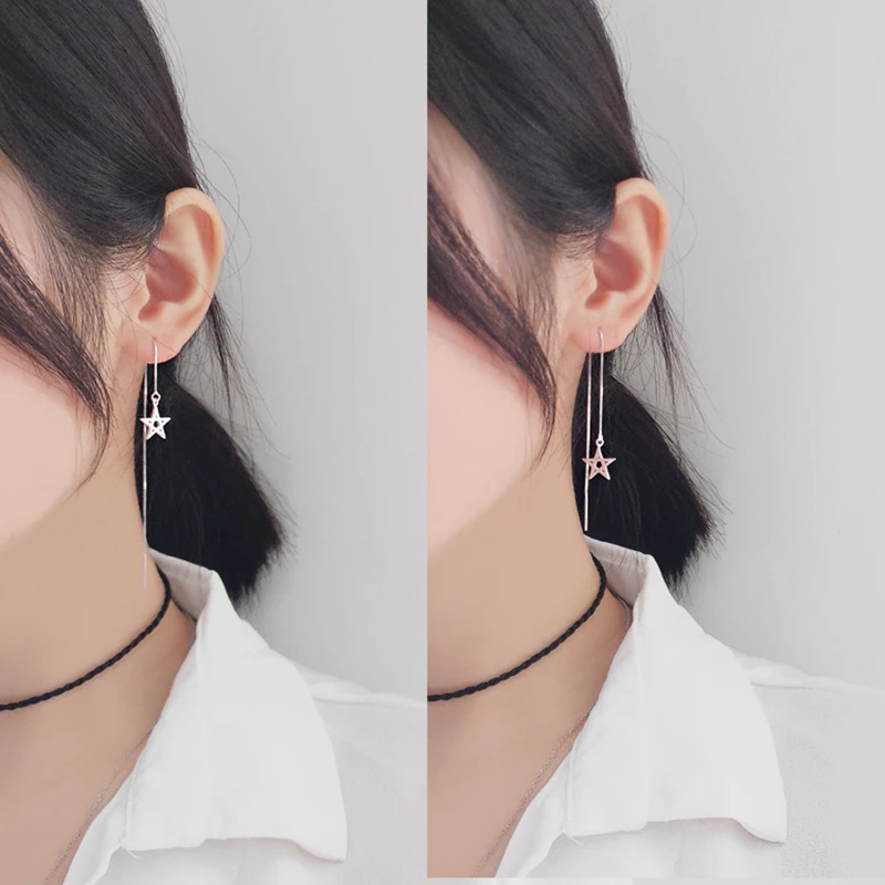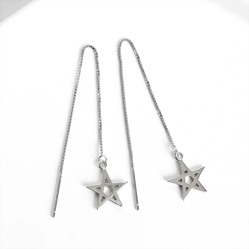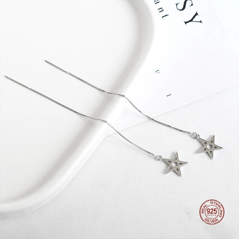LKO Настоящее серебро 925 пробы, длинная кисточка, пятиконечная звезда, серьги для женщин, простые стильные украшения со звездами для девочек, подарки на вечеринку