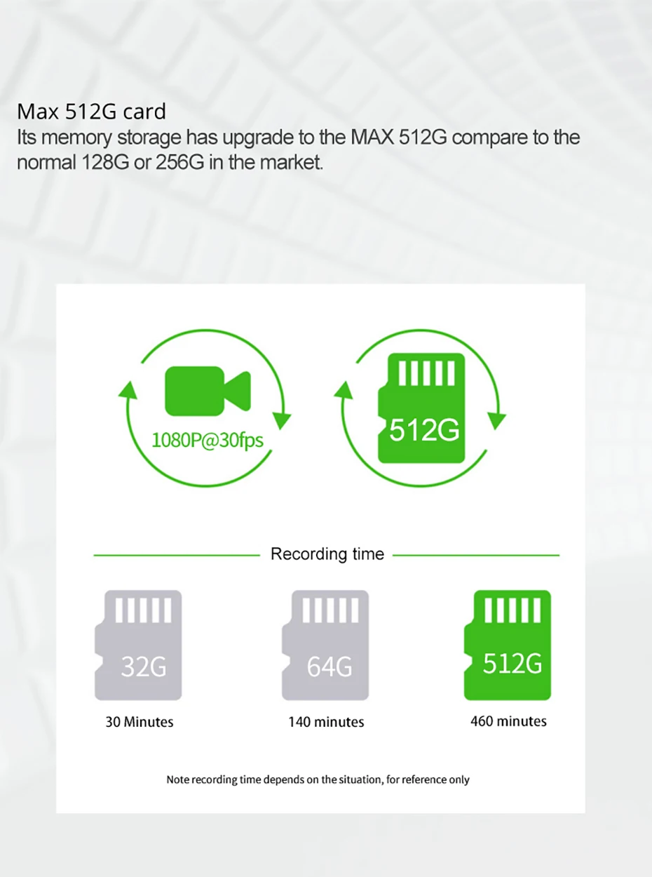 Циклическая запись гарантирует, что ваша камера не прекратит запись, когда память заполнена. Камера автоматически перезаписывает самые старые файлы на карту памяти, что позволяет ей записывать неопределенное время.