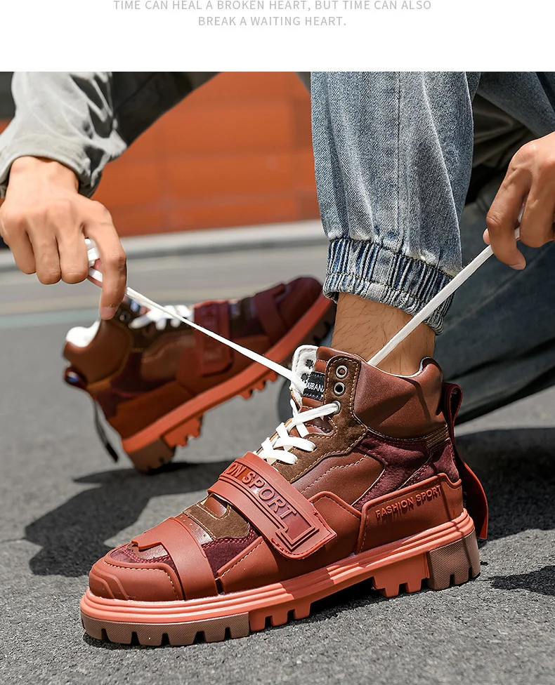 Модные коричневые мужские высокие кроссовки в стиле ретро, обувь с леопардовым принтом, мужские повседневные кроссовки из микрофибры, кроссовки на платформе для мужчин, zapatillas hombre