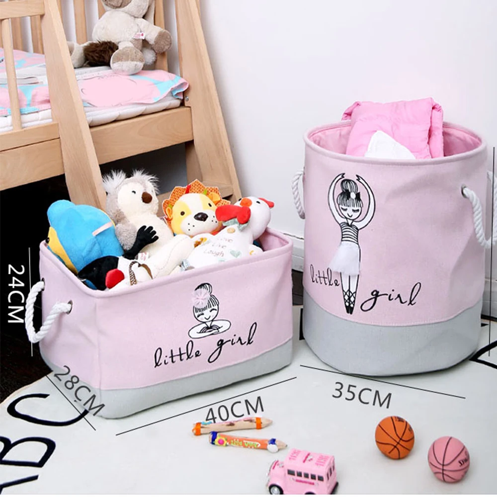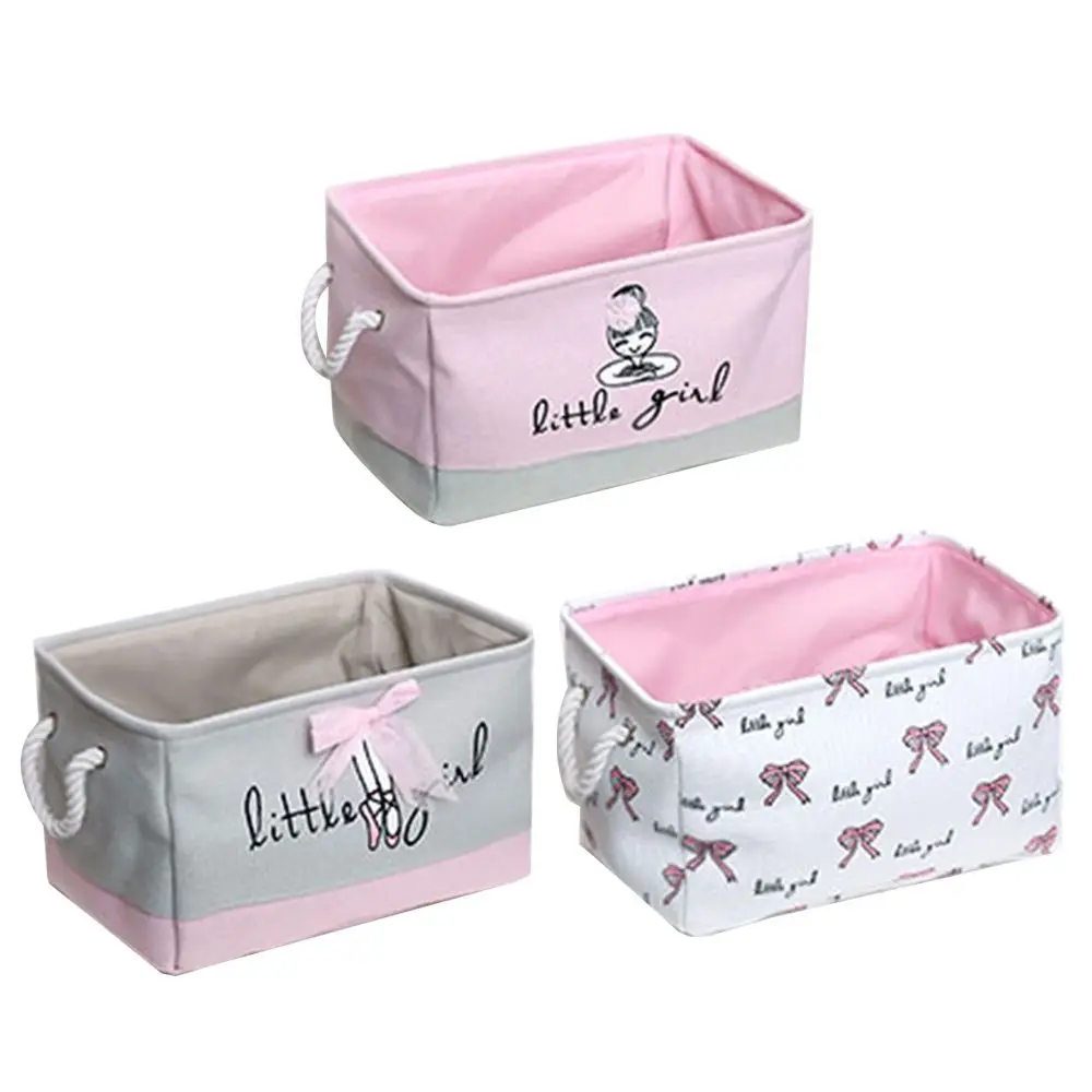 Детская розовая корзина для белья, органайзер из хлопка и льна, бал...