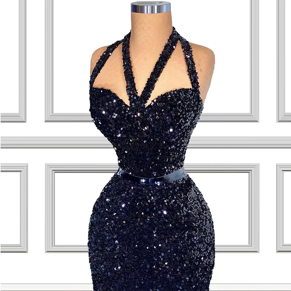 Двойной плечевой ремень черный платье для выпускного с пайетками Об...