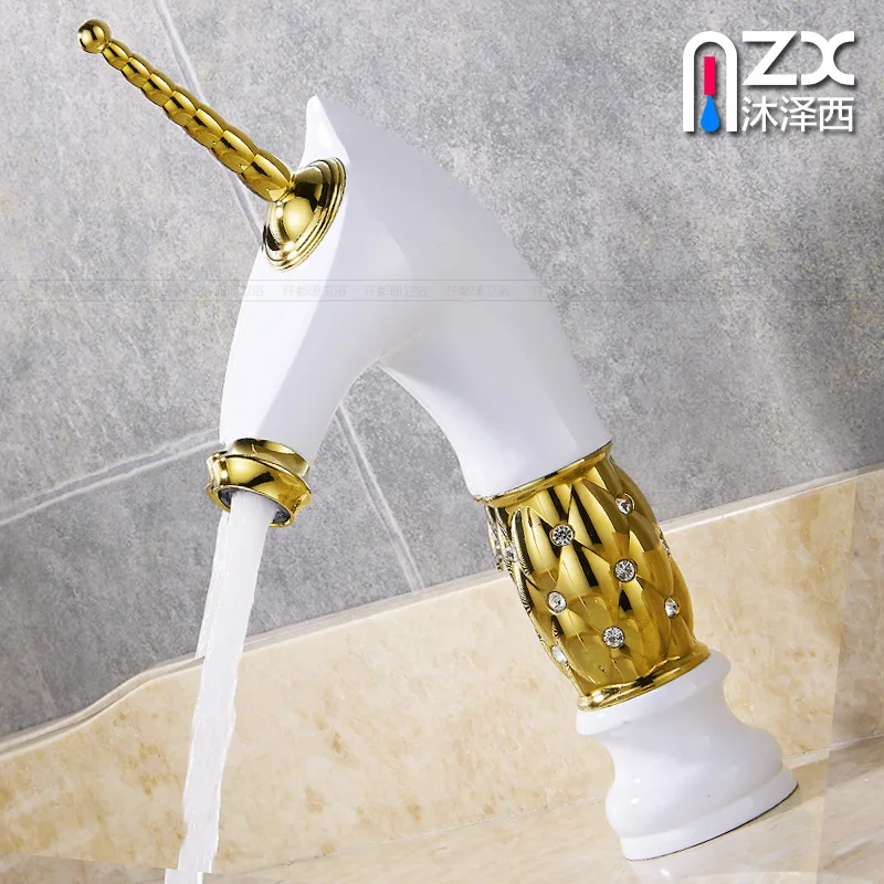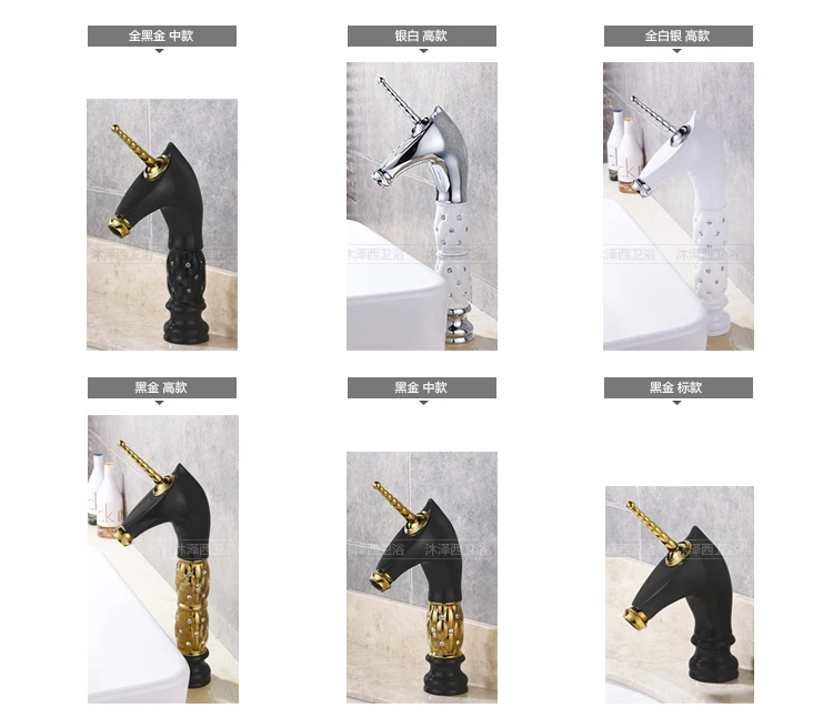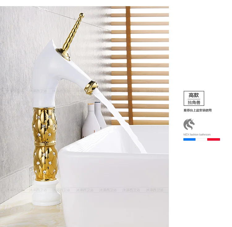 Смеситель Unicorn для горячей и холодной воды, медная раковина, черно-белая на платформе, смеситель для умывальника в европейском стиле