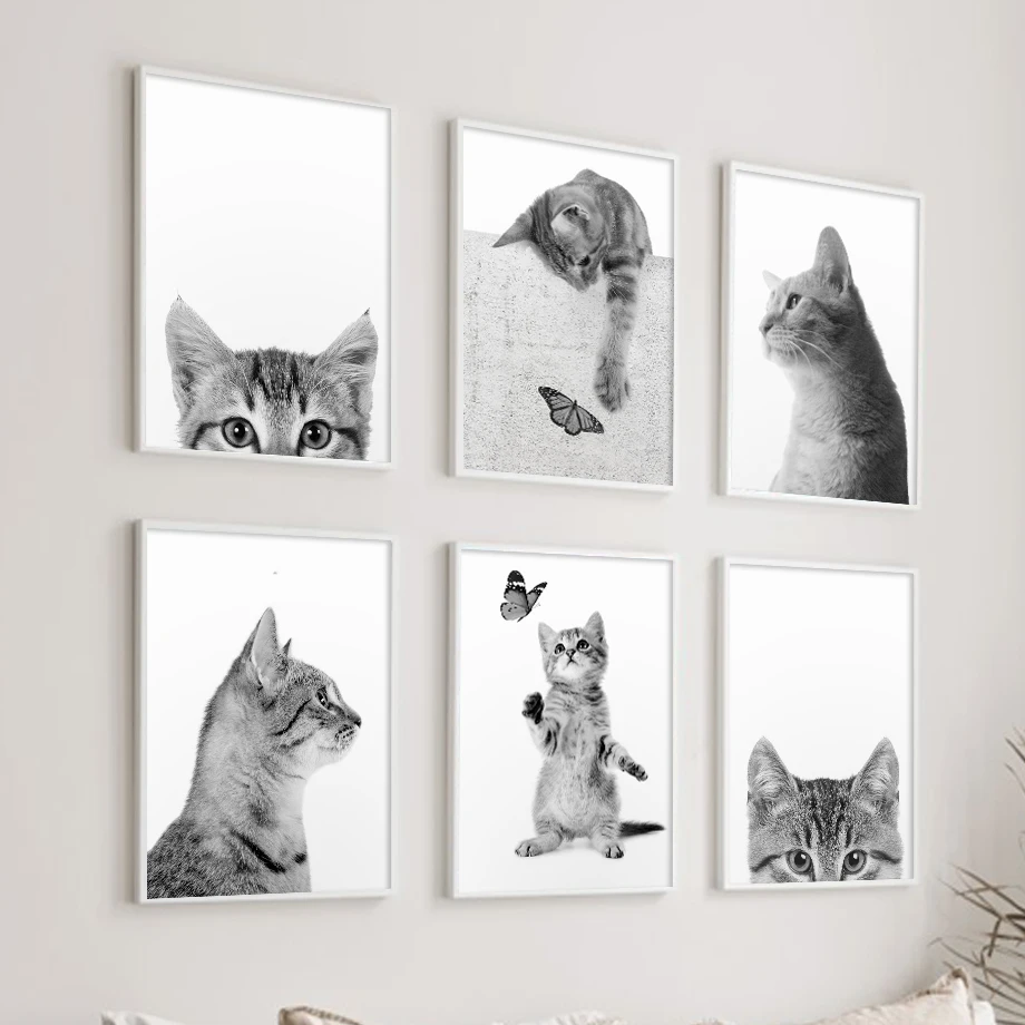 WTQ черная белая кошка бабочка Смешные животные Искусство животных Картина на холсте настенный Декор Картина декор для комнаты домашний декор
