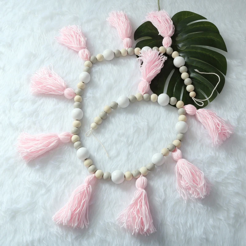 Деревянная гирлянда из бисера макарун с кисточками в скандинавском стиле для детской комнаты пряжа и бусины подвесная нить для детской жемчужной палатки украшение