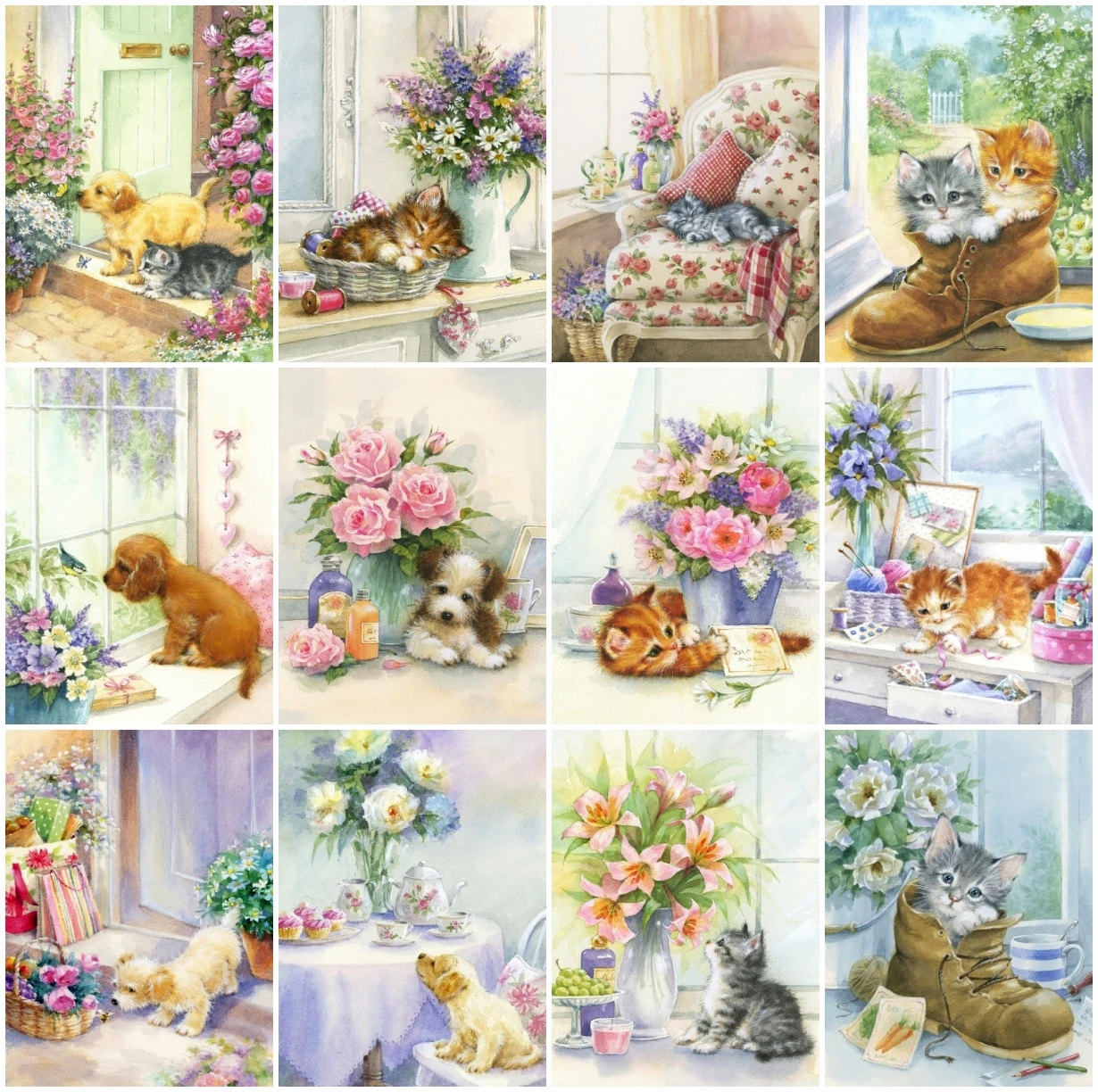 AZQSD алмазов картина кошка собака ручной работы подарок полная выкладка, алмазная вышивка сад вышивка крестом Стразы украшения для дома