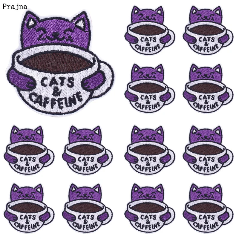 Нашивки Prajna 10 шт. с милым котом для одежды, термоклеящиеся нашивки, Мультяшные нашивки с вышивкой животных, аппликация на одежду