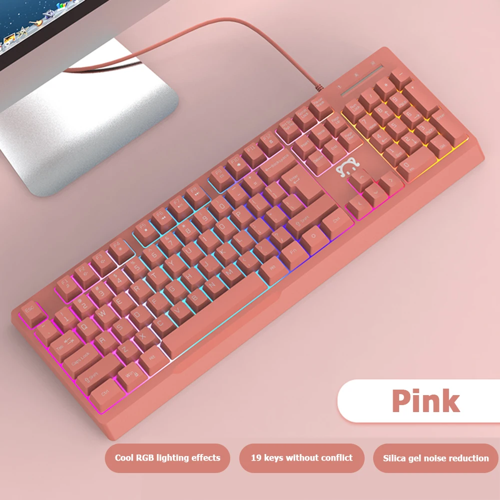 Механическая игровая клавиатура Girly Pink, проводная геймерская кл...