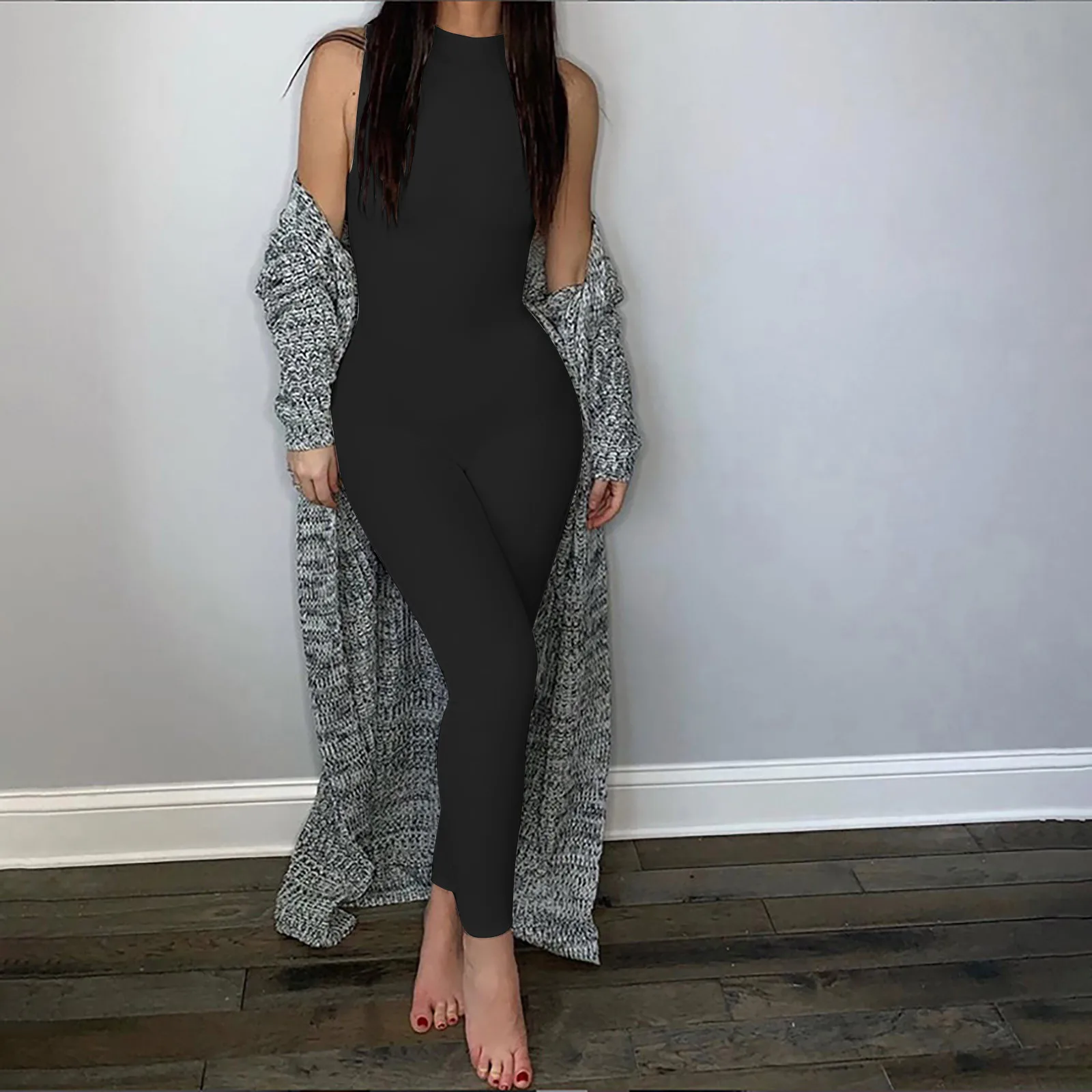 Комбинезон женский трикотажный однотонный, без рукавов, с высокой талией, белый, черный, спортивный костюм