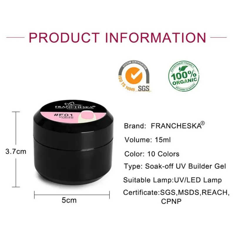 В описании указано,что это билдер гель,но это далеко не так,Очень густой,на кисть не взять.Как густая масляная ириска. Вообще то гели от Франческа очень хорошие,я их заказываю переодически,но тут,что то совсем не то.... Открыла спор,деньги вернули.